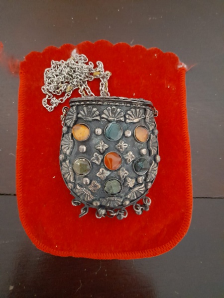 • ACESSORIO INDIANO EM METAL CRAVEJADO DE PEDRAS - USADO - NO ESTADO CONFORME FOTO