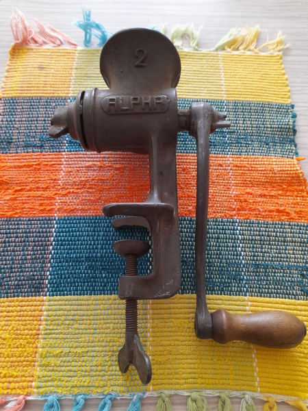 • ANTIGO MOEDOR DE CARNE MANUAL EM FERRO FUNDIDO - MARCA ALPHA - USADO - NO ESTADO CONFORME FOTO