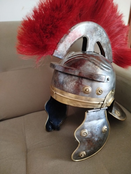 • ANTIGA E RARA REPLICA DE ELMO ROMANO - NO ESTADO CONFORME FOTOS - ITEM SERA ENVIADO DA BAHIA