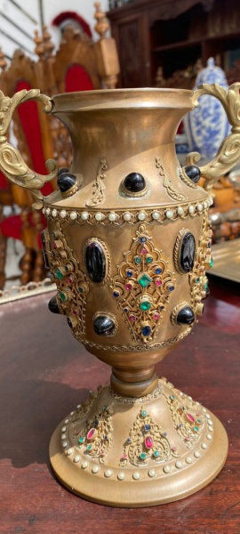 • LINDISSIMA E RARA TAÇA MARROQUINA EM BRONZE COM PEDRAS SEMI-PRECISOSAS - SECULO XIX - ITEM EM PERFEITO ESTADO CONFORME FOTO - ITEM SERA ENVIADO DA BAHIA