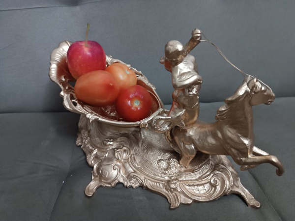 • ANTIGA FRUTEIRA EM ESTILO ART NOUVEAU - CARRUAGEM DE POSEIDON - EM METAL DOURADO - 32CM - NO ESTADO CONFORME FOTOS - ITEM SERA ENVIADO DA BAHIA