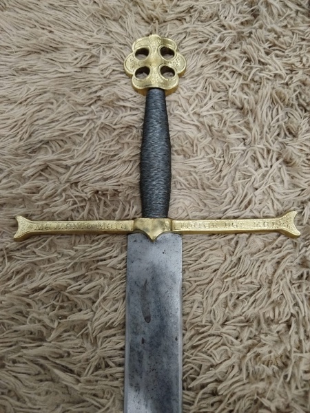 • ANTIGA ESPADA EM AÇO E BRONZE MEDINDO 130CM COM INSCRICOES EM LATIM - EM OTIMO ESTADO CONFORME FOTOS