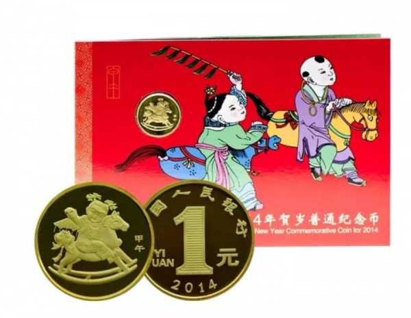 • MOEDA CHINA - 1 YUAN 2014 - LATÃO - 6,8 GRAMAS - 25MM - FC - ANO DO CAVALO - ENCARTE ORIGINAL -  EM PERFEITO ESTADO CONFORME FOTOS