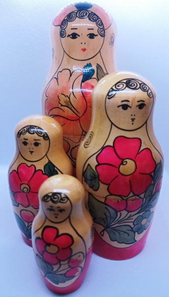 • BONECAS RUSSA MATRYOSHKA - ANTIGA PROVAVELMENTE DECADA DE 70 - EM MADEIRA E COM PINTURA A MAO - CONJUNTO CONTEM 4 BONECAS QUE SE ENCAIXAM UMA DENTRO DA OUTRA - COMPRADO EM LEILAO NA BULGARIA - EM PERFEITAS CONDICOES - CONFORME FOTOS
