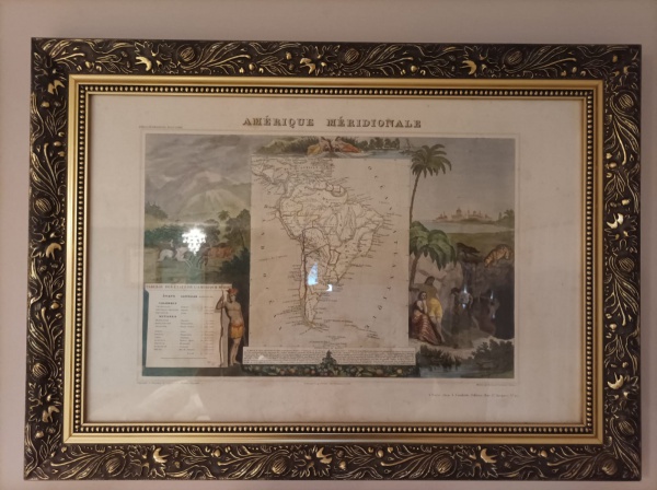 • MAPA AMERICA MERIDIONALE DE 1856 COM MAPA DA AMERICA DO SUL E ALEGORIAS - AQUARELADO A MAO - ILUSTRADO POR RAIMOND BONHEUR PEINTRE - IMPRESSO EM PARIS POR A. COMBETTE EDITEUR - EM LINDA MOLDURA - MEDINDO 67 X 48 CM COM MOLDURA - GRAVURA COM MARCAS DO TEMPO, MAS EM OTIMAS CONDICOES.