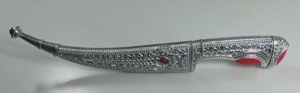 • BELA ADAGA INDIANA TODA DECORADA E PRATEADA, LAMINA EM AÇO SEM CORTE - LINDO ARTIGO DE DECORACAO - NOVA - MEDINDO 28 CM - NO ESTADO CONFORME FOTOS