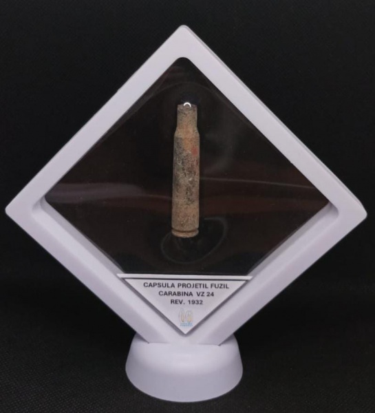 • CAPSULA PROJETIL FUZIL CARABINA VZ 24 UTILIZADO NA REVOLUÇAO CONSTITUCIONALISTA DE 1932 - MEDINDO 57MM DE COMPRIMENTO E 10MM DE DIAMETRO - PESO 10,9 GRAMAS - ENCONTRADO COM DETECTOR DE METAIS EM TRINCHEIRA PAULISTA NA CIDADE DE ITAPIRA, DIVISA COM MINAS GERAIS - ACOMPANHA DISPLAY - EM OTIMO ESTADO CONFORME FOTOS