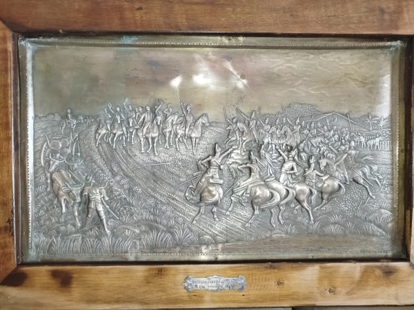 • ANTIGO QUADRO REPRESENTANDO A INDEPENDENCIA DO BRASIL EM METAL - NO ESTADO CONFORME FOTOS - ITEM SERA ENVIADO DA BAHIA