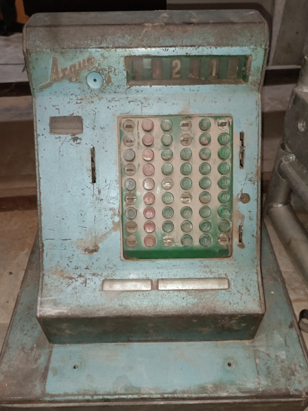 • ANTIGA MAQUINA REGISTRADORA ARGUE - NO ESTADO CONFORME FOTOS - ITEM SERA ENVIADO DA BAHIA