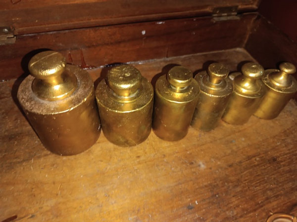 • ANTIGO CONJUNTO DE 6 PESOS EM BRONZE - NO ESTADO CONFORME FOTOS - ITEM SERA ENVIADO DA BAHIA