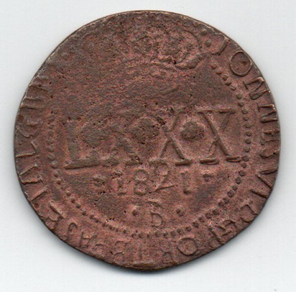 • MOEDA BRASIL IMPERIO - LXXX REIS 1821 - BC - COBRE - 28,68 GRAMAS - 42MM