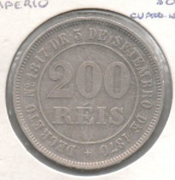 • MOEDA BRASIL IMPERIO - 200 REIS 1889 - MBC/SOB - CUPRO-NIQUEL - 15 GRAMAS - 32MM - CATALOGO AVALIA ENTRE R$ 75,00 E R$ 650,00 - NO ESTADO CONFORME FOTOS