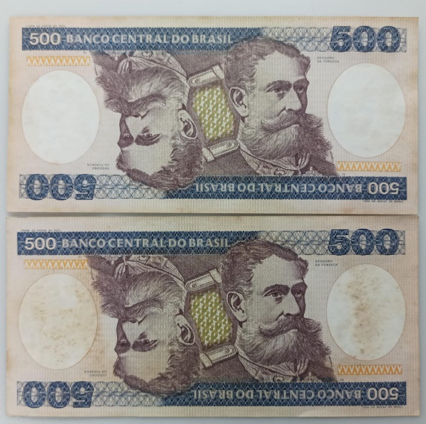 • LOTE CONTENDO 2 CEDULAS DE 500 CRUZEIROS - C160 - MBC/SOB - ITEM NO ESTADO CONFORME FOTOS