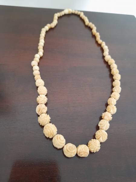 • ANTIGO E LINDO COLAR DE ORIGEM CHINESA EM MARFIM RICAMENTE ORNAMENTADO EM FORMATO DE ROSAS - NO ESTADO CONFORME FOTOS