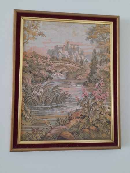 • ANTIGO QUADRO EM TAPEÇARIA GOBELINS - MEDINDO 50 X 40CM - NO ESTADO CONFORME FOTO