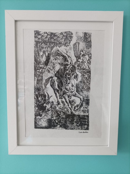 • GRAVURA - LUIS JARDIM -FUGA A CAVALO - 27,5 X 19,5CM - COM MOLDURA MOLDURA BRANCA E PASPATUR - NO ESTADO CONFORME FOTOS
