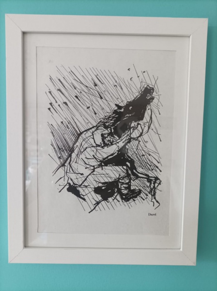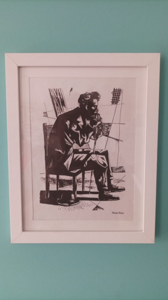 • GRAVURA - SANTA ROSA - HOMEM PENSANDO - 27,5 X 19,5CM - COM MOLDURA MOLDURA BRANCA E PASPATUR - NO ESTADO CONFORME FOTOS