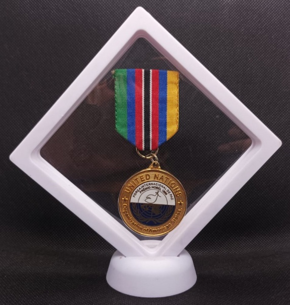 • MEDALHA DA ORGANIZACAO BRASILEIRA DOS VETERANOS DAS NAÇOES UNIDAS: MARINHA, EXERCITO, AERONAUTICA. UNITED NATIONS - FORÇA INTERNACIONAL DE PAZ. FABRICADA EM METAL DOURADO E ESMALTE - MEDINDO 41 MM DE DIAMETRO - NO DISPLAY - EM PERFEITAS CONDIÇÕES CONFORME FOTOS