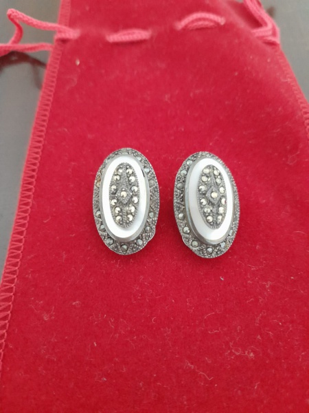 • PAR DE BRINCOS DE PRESSAO VINTAGE EM PRATA E MARCASSITA - NO ESTADO CONFORME FOTO