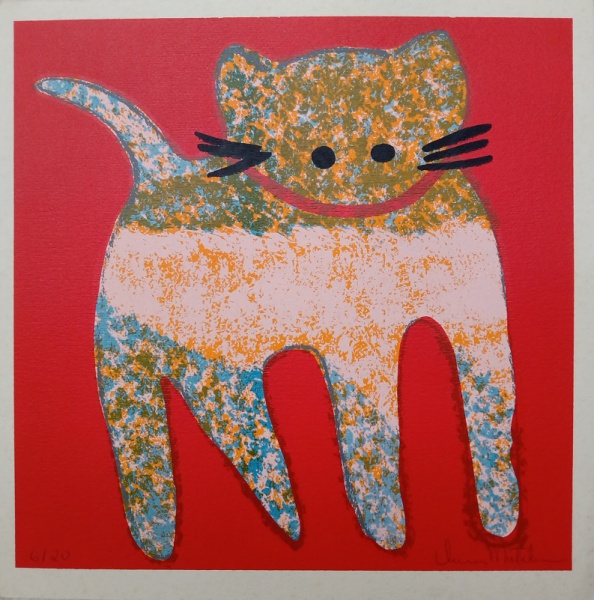 • GRAVURA - TIRAGEM 6/20 - GATO FUNDO VERMELHO - SERIGRAFIA - 29 X 29CM - VANIA NATALINO - ASSINADO A LAPIS PELA ARTISTA - ACID - SEM MOLDURA