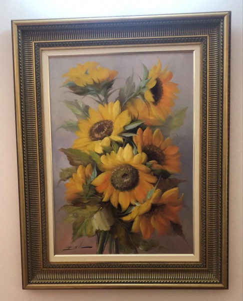 • PINTURA OLEO SOBRE TELA - DENOMINADA GIRASSOIS - ARTISTA DAVI DAGOBERTO VITOR - ASSINADA PELO ARTISTA - LINDA MOLDURA - MEDIDA TELA - 73 X 53 CM  E COM MOLDURA 91 X 71 CM - EM PERFEITO ESTADO CONFORME FOTOS