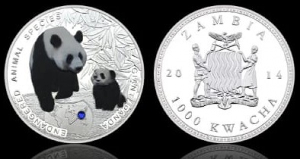 • MOEDA ZÂMBIA - 1000 KWACHA 2014 - CUPRO-NIQUEL REVESTIDO DE PRATA - 26 GRAMAS - 40MM - FC - ESPECIES ANIMAIS AMEACADAS - PANDA GIGANTE - NO ESTADO CONFORME FOTOS