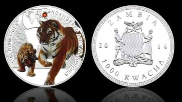 • MOEDA ZÂMBIA - 1000 KWACHA 2014 - CUPRO-NIQUEL REVESTIDO DE PRATA - 26 GRAMAS - 40MM - FC - ESPECIES ANIMAIS AMEACADAS - TIGRE SIBERIANO - REPLICA EM PERFEITO ESTADO CONFORME FOTOS