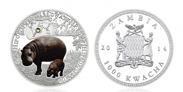 • MOEDA ZÂMBIA - 1000 KWACHA 2014 - CUPRO-NIQUEL REVESTIDO DE PRATA - 26 GRAMAS - 40MM - FC - ESPECIES ANIMAIS AMEACADAS - HIPOPOTAMO PIGMEU - REPLICA EM PERFEITO ESTADO CONFORME FOTOS