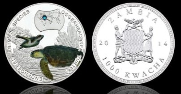 • MOEDA ZÂMBIA - 1000 KWACHA 2014 - CUPRO-NIQUEL REVESTIDO DE PRATA - 26 GRAMAS - 40MM - FC - ESPECIES ANIMAIS AMEACADAS - TARTARUGA MARINHA CABEÇUDA - REPLICA EM PERFEITO ESTADO CONFORME FOTOS