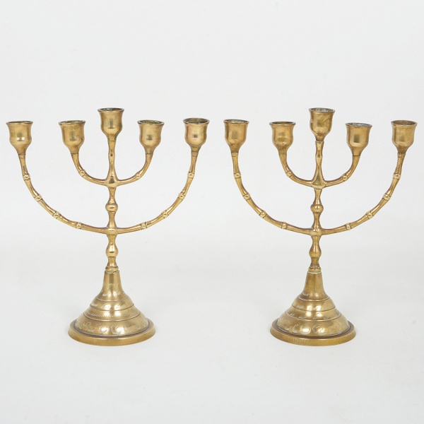 • PAR DE CANDELABROS EM BRONZE CINZELADO COM BASE CIRCULAR - PESANDO 740 GRAMAS  O PAR - MEDINDO 23,5 X 9CM - EM OTIMO ESTADO CONFORME FOTOS