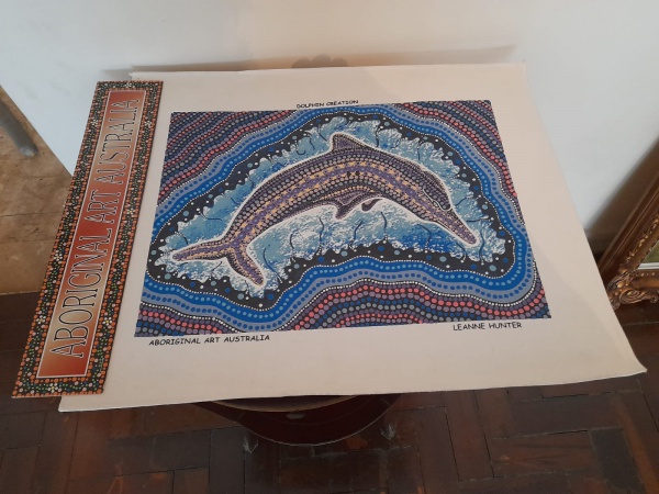 • LINDA GRAVURA EM TECIDO REPRODUZINDO ARTE ABORIGENE AUSTRALIANA - NOVO - NO ESTADO CONFORME FOTO