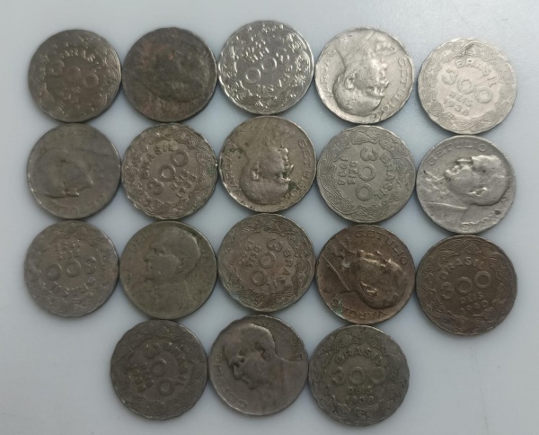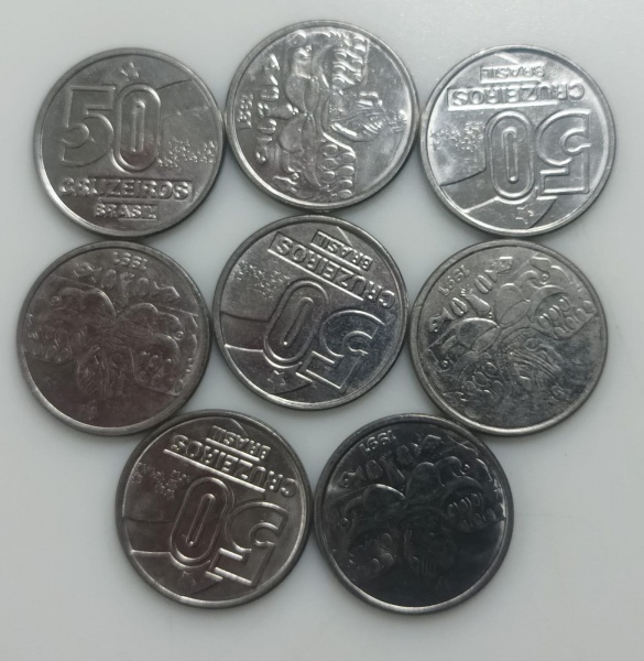• 6 MOEDAS 50 CRUZEIROS 1990 A 1992 - AÇO-INOX - 4,8 GRAMAS - 23,5 MM - LOTE AVALIADO ENTRE R$ 10,00 A R$ 25,00 - NO ESTADO CONFORME FOTO