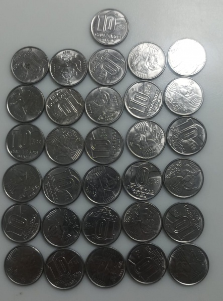 • 39 MOEDAS 10 CRUZEIROS 1990 A 1992 - AÇO-INOX - 4,4 GRAMAS - 22,5 MM - LOTE AVALIADO ENTRE R$ 60,00 A R$ 150,00 - NO ESTADO CONFORME FOTO