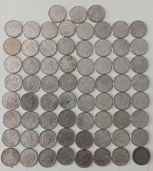 • 67 MOEDAS 10 CENTAVOS 1967 A 1979 - CUPRO-NIQUEL / AÇO-INOX - 5,5 OU 4,2 GRAMAS - 23 MM - LOTE AVALIADO ENTRE R$ 100,00 A R$ 200,00 - NO ESTADO CONFORME FOTO