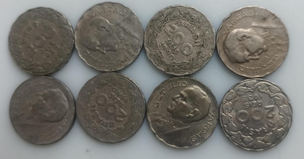 • 8 MOEDAS 200 REIS 1938 A 1942 - CUPRO-NIQUEL - 3,5 GRAMAS - 19 MM - LOTE AVALIADO ENTRE R$ 32,00 A R$ 80,00 - NO ESTADO CONFORME FOTO